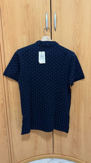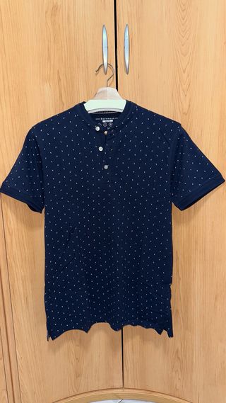 Polo de manga corta con un discreto estampado. - Cuello tipo mao con botones. - Tejido de punto. - Diseño con pequeños motivos blancos.