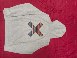 Sudadera cómoda y con estilo. - Diseño con estampado de X multicolor en el pecho. - Bolsillo canguro frontal. - Capucha con cordón ajustable. - Pequeña etiqueta de marca en la parte superior delantera.
