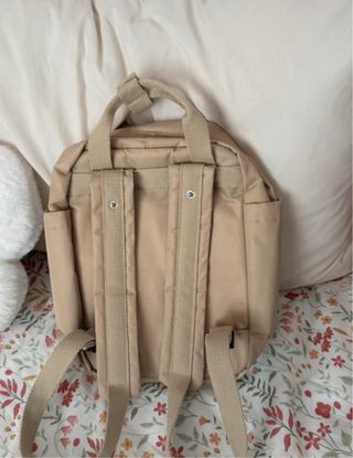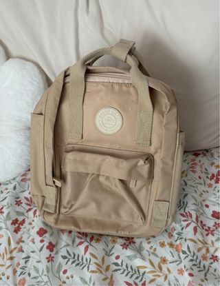 Mochila de la marca Green Coast en color beige. Diseño práctico y moderno. - Compartimento principal con cierre. - Bolsillo frontal con cremallera. - Asas ajustables.