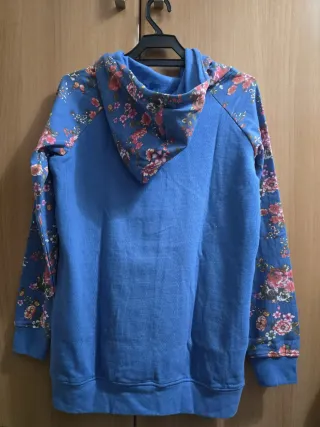 Sudadera con capucha y mangas estampadas con flores.Bolsillo frontal.Cordones ajustables en la capucha. Sisa a sisa 49 cm y largo 71 cm. TE INVITO A VISITAR MI SEGUNDO PERFIL. UNE TODOS LOS ARTÍCULOS QUE TE GUSTEN Y PAGA UN SOLO ENVÍO