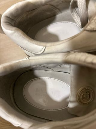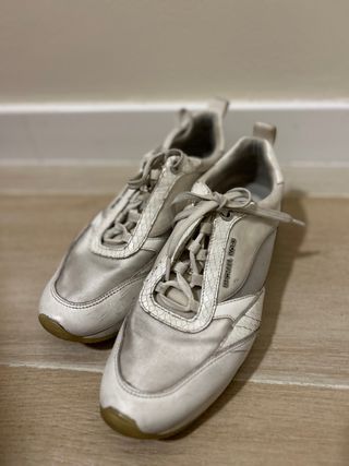 Zapatillas de diseño moderno con detalles texturizados. - Combinación de materiales en blanco y beige. - Cierre con cordones. - Detalle de logo en el lateral.
