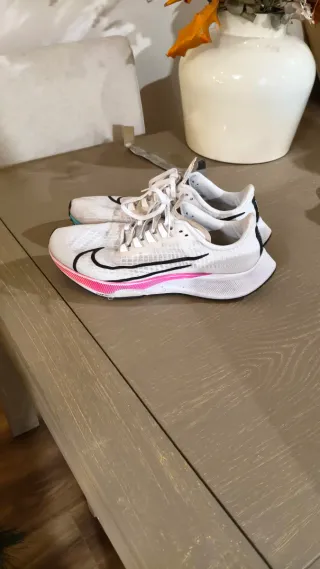 Zapatillas deportivas con un diseño moderno y llamativo. - Combinación de blanco con detalles en rosa vibrante. - Swoosh de Nike en negro a contraste.