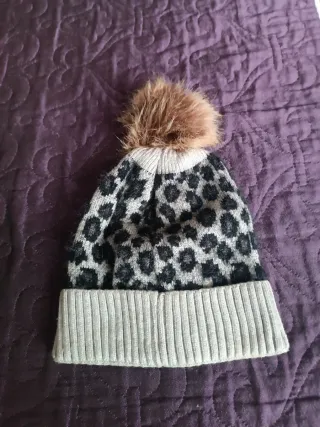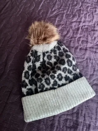 Gorro de punto con un llamativo estampado animal print. Perfecto para añadir un toque de estilo a tus días. - Diseño con pompón. - Puño de canalé.