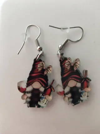 Originales pendientes con diseño de gnomo, sosteniendo una botella y una copa de vino para brindar Medidas aprox.: 4,5 x 2 cm Navidad, Reyes, fiestas