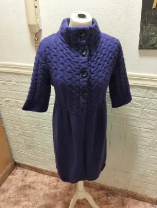 Abrigo de punto con un diseño tejido en la parte superior y mangas. - Cuello alto. - Cierre de botones. - Mangas de tres cuartos. Lana y mezcla