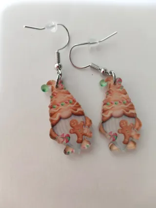 Originales pendientes con diseño de gnomo navideño, con detalle de galletas de jengibre. Cierre de anzuelo con tope de silicona. Medidas aprox.: 4,5 x 2 cm