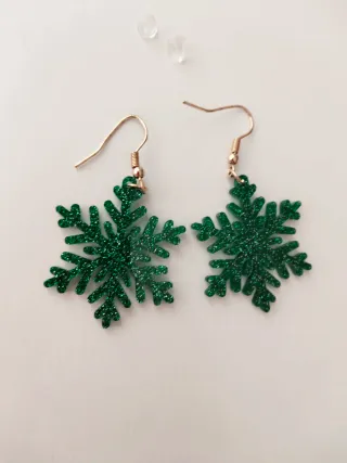 Pendientes con diseño de copo de nieve color verde, perfectos para un toque festivo, acabado brillo. Medidas aprox.: 5,2 x 3 cm Navidad, Reyes, regalo.