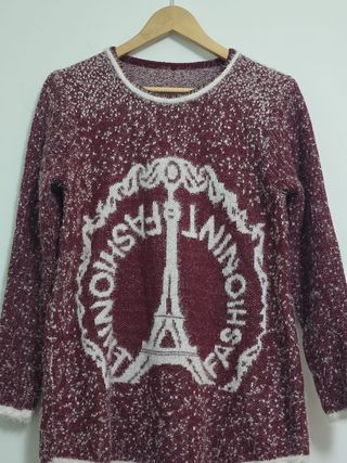 Jersey de punto con un diseño llamativo de la Torre Eiffel.Tejido suave y cálido. Mide de sisa a sisa 48 cm y de largo 70 cm. No tiene talla VISITA MI PERFIL TENGO MÁS MODA. HAGO ENVÍOS