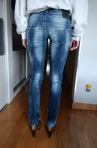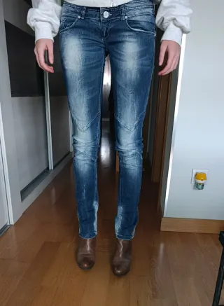 Pantalón vaquero de corte moderno. - Diseño de cinco bolsillos. - Cierre de cremallera y botón.