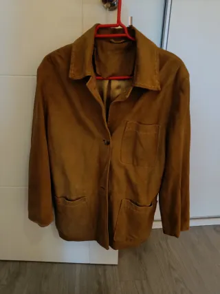 Chaqueta de cuero Timberland Weathergear de color marrón. Presenta un diseño clásico y funcional. - Cuello forrado de borreguito. - Cierre de botones. - Múltiples bolsillos frontales.