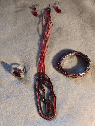 Precioso y original collar a juego con pendientes, anillo y preciosa pulsera rígida, en tono rojo