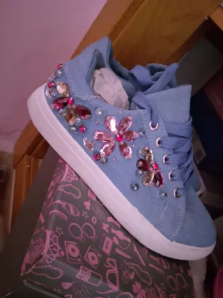 Deportivas azules con pedrería rosa