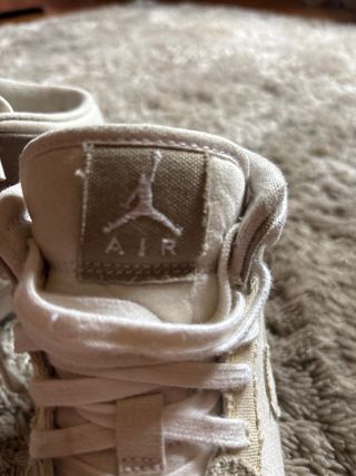 Zapatillas altas de la marca Air Jordan en talla 38. Combinan tonos beige y rosa para un estilo único. - Diseño de caña alta. - Detalle de perforaciones en la puntera. - Logo de Air Jordan en la lengüeta.