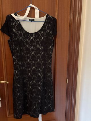 Vestido encaje negro Mdm T36 espalda descubierta