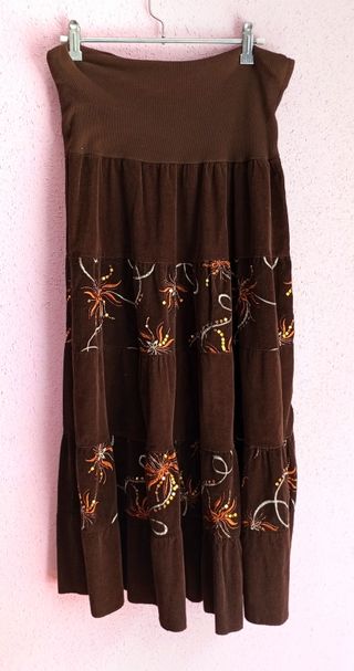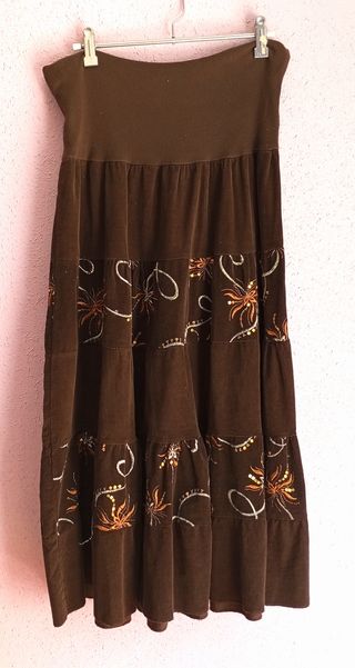 Falda pana marrón bordada con lentejuelas