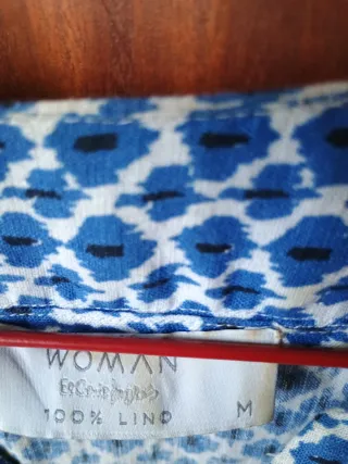 Vestido de lino 100/% con un bonito estampado. - Diseño con cuello en V. - Manga francesa - Estampado geométrico.