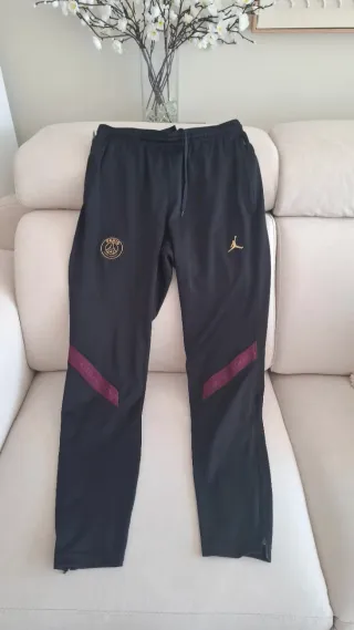 Pantalón deportivo para hombre de la marca Jordan. - Diseño en color negro con detalles dorados. - Logotipo de Paris Saint-Germain en el muslo izquierdo. - Logotipo de Jordan Jumpman en el muslo derecho. - Inserciones de color burdeos en los laterales de las piernas. - Cremalleras en los tobillos.