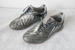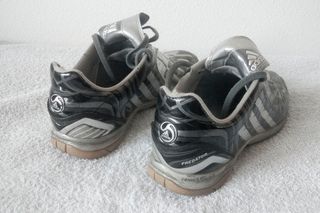 zapatillas de fútbol sala Adidas Predator talla 39 unisex. Color plateado claro y oscuro. Estampado único con tribales. Vintage año 2008. Muy usadas pero con un poco más de vida por delante. - Color negro y plateado. - Cierre de velcro y cordones. - Talla 42.