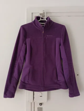 Chaqueta polar de montaña para mujer, ideal para actividades al aire libre, yoga, incluso para estar por casa. - Tejido polar suave y cálido. - Cierre completo con cremallera. - Dos bolsillos laterales con cremallera. - Cuello alto para mayor protección.