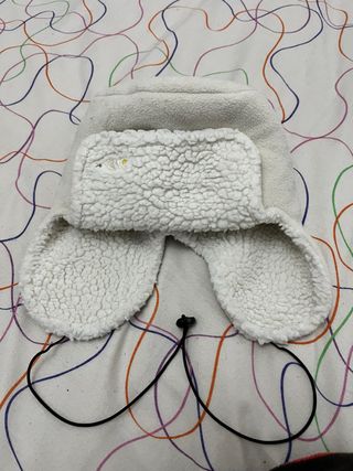 Gorro de lana suave con orejeras para mantenerte abrigado. - Material: Lana - Diseño: Con orejeras y cordones ajustables Talla mas o menos pequeña