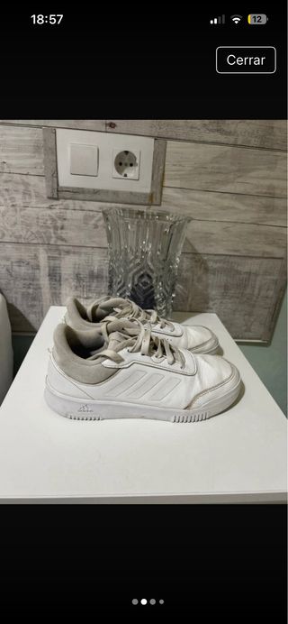 Zapatillas deportivas Adidas en tonos blanco y beige. - Diseño clásico con las tres rayas. - Cierre de cordones. - Suela de goma.