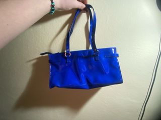 Bolso de charol azul de Topshop. Un accesorio llamativo y elegante. - Acabado brillante. - Cierre de cremallera. - Detalles metálicos.