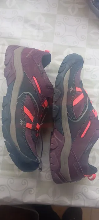Zapatillas deportivas Quechua en color morado y detalles en fucsia.Perfectas para senderismo o actividades al aire libre. -Waterproof - Cierre con cordones elásticos y tanca. - Tirador trasero para facilitar su puesta. - Suela de goma adherente.