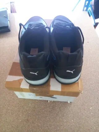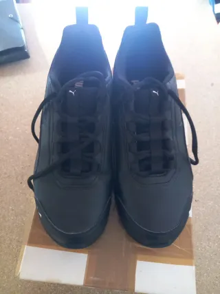 Nuevo a estrenar pero sin etiqueta. Zapatillas deportivas Puma en color negro. - Cierre con cordones. - Detalle de logo en la lengüeta. - Suela de goma. Precio no negociable.