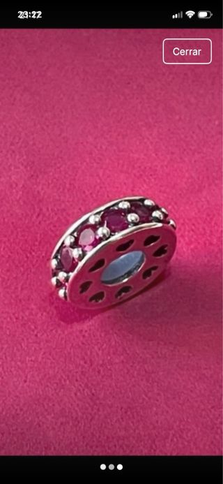 Charm de plata con un diseño elegante y adornado con piedras rojas. - Diseño con piedras incrustadas. - Detalles calados en forma de corazón.