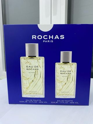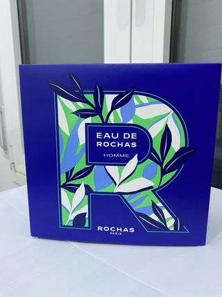 Este es un set de fragancia Eau de Rochas Homme. - Diseño con motivos botánicos en tonos azules y verdes. - Presentación en caja distintiva.