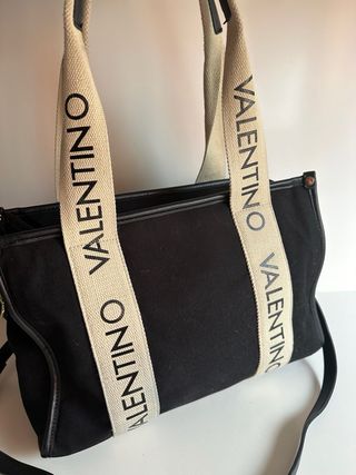 Bolso de mano y bandolera de Mario Valentino.bolso grande buen estado en general, tan solo última foto - Correa de hombro ajustable. - Bandas con logo de Valentino. - Material textil y polipiel