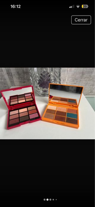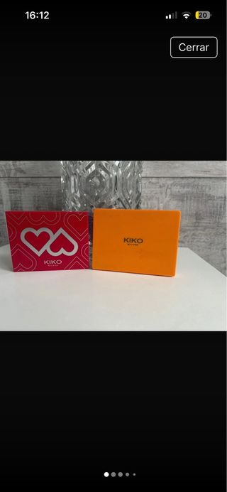 Dos cajas de la marca KIKO MILANO. - Una caja es de color rojo con corazones plateados. Con colores en tonos mate - La otra caja es de color naranja.con colores en tonos metalizados Cada una por 7,00€