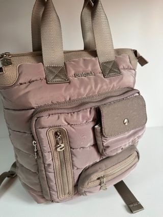 Mochila Desigual con un diseño acolchado y detalles en contraste.muy buen estado, solo pequeño defecto última foto - Compartimento principal con cierre. - Bolsillos exteriores con cremallera. - Asas ajustables.