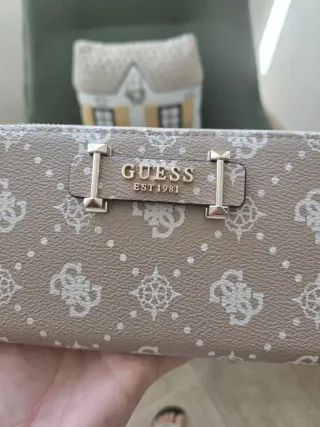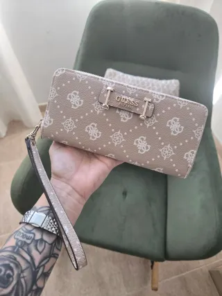 Cartera grande con el logo de Guess. - Diseño con monograma. - Incluye correa de mano. - Cierre de cremallera.