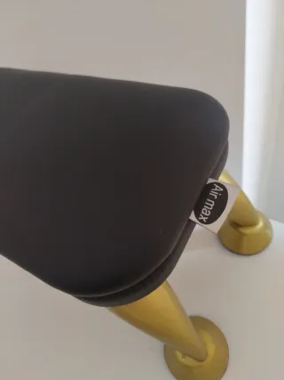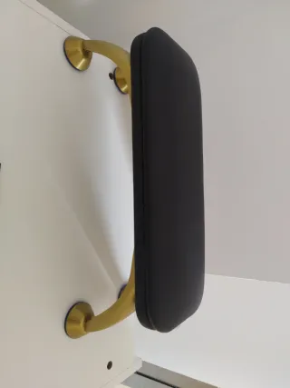 Apoyabrazos diseñado para manicura, con un acabado elegante. - Estructura metálica dorada. - Acolchado en color negro.