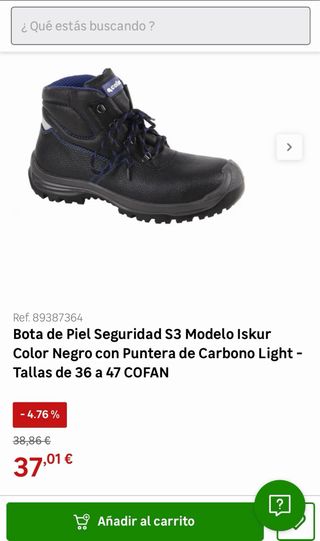 Botas Seguridad Piel Negra COFAN Talla 45.