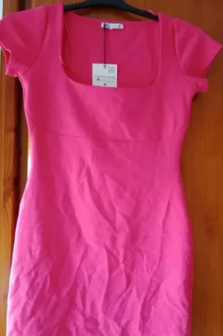 Lote de dos vestidos de verano, uno de la marca Zara y otro de Stradivarius. - Vestido rosa de Zara -vestido verde pistacho Stradivarius - Talla M (38/10). - Diseño con escote cuadrado. - Mangas cortas.