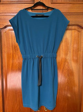 Vestido corto de la marca Reserved. Tiene un diseño moderno y favorecedor. - Cintura elástica con cordón. - Mangas cortas tipo casquillo. - Largo por encima de la rodilla.