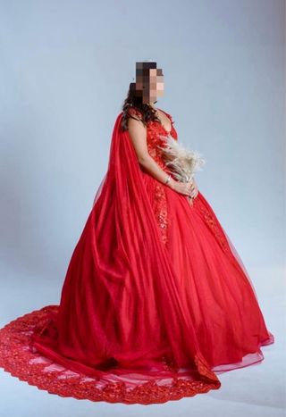 Vestido de quinceañera con un diseño espectacular. - Cuerpo de encaje y pedrería. - Falda de tul voluminosa. - Escote pronunciado. - Tirantes finos. -tiene capa