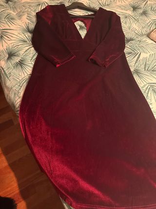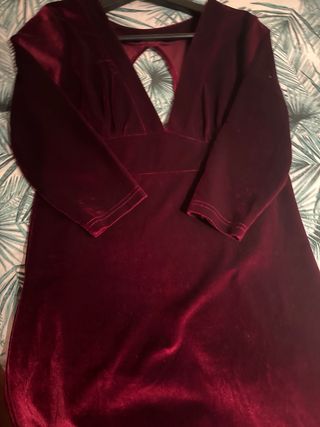 Elegante vestido largo de terciopelo. - Material: Terciopelo - Diseño con escote pronunciado y detalle de ojal en la espalda. - Mangas largas.