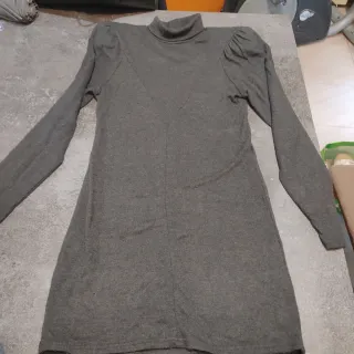 Vestido gris de manga larga de Mango con un diseño elegante y moderno de la talla S. - Nuevo poco usado. - Cuello alto. - Hombreras marcadas que realzan el fruncido decorativo de los hombros. - Manga larga. - Corte ajustado. - Tejido blando y cómodo. Se adapta a cualquier tipo de cuerpo.