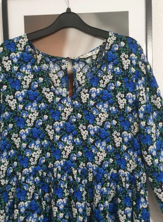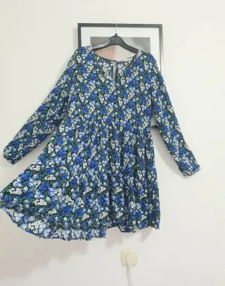 Vestido estampado floral de manga larga. Muy bonito. #vestido #lefties #talla36 #36 #floral #estampadofloral #vestidocorto #azul #blanco