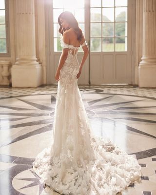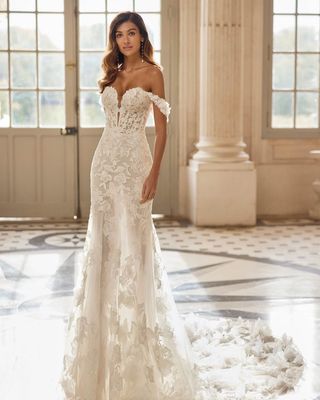 Se vende vestido de novia en perfecto estado, utilizado únicamente el día de la boda. Ha sido limpiado posteriormente por profesionales especializados, por lo que se conserva en condiciones impecables. Modelo Eliza de Rosa Clará, un diseño de líneas elegantes y estilo romántico. Presenta un favorecedor corte sirena, escote bardot con delicados detalles florales y una espalda con transparencias y encaje que aportan sutileza y sofisticación. La falda, de voluminoso corte, está adornada con aplicaciones de flores en 3D, confeccionada en tul y encaje de alta calidad. Un diseño cuidadosamente elaborado que aporta distinción y elegancia.