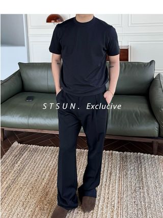Pantalones negros de vestir con un corte moderno. - Diseño elegante. - Cintura alta. - Pierna ancha.