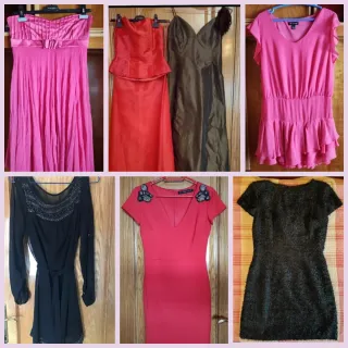 Vestidos de fiesta usados en una sola ocasión. Precios entre 15 y 25€. - Largo rojo con corpiño talla S, para espalda pequeña o poco pecho de boutique 25€ - Largo dorado de Zara super elegante talla S, para espalda pequeña o poco pecho, 25€ - Fucsia uno de mango y otro de boutique son talla L, ideal para dos damas de honor, 15€ cada uno - Negro brillante talla L 15€, de boutique - Negro con mangas transparentes super elegante lleva doble capa de gasa, es de Blanco talla S 15€. - Rojo con adornos en los hombros, de Zara Talla S, super entallado 25€