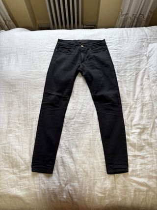 Lote de cinco pantalones de vestir. - Color negro. - Diseño clásico.