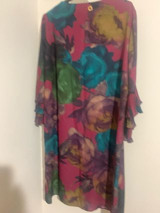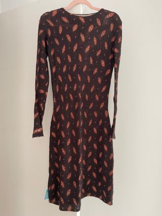 Vestido con un estampado original y llamativo. Da más talla de una S - Diseño cruzado. - Detalle de botones en un lateral. - Manga larga. - Largo hasta la rodilla.