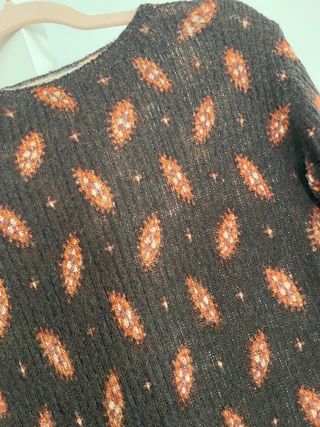 Vestido de lana muy abrigadito. Hay que llevar un vestido basico o forro debajo porque transparenta el canale. No aprieta nada y cede perfectamente psra talla L