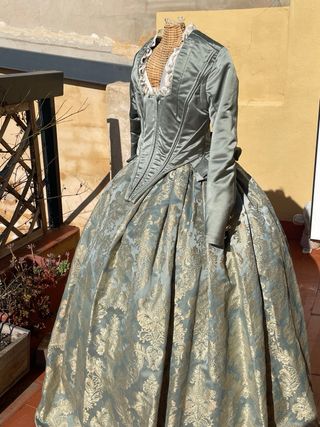 Vestido Fallera Seda verde turia de vives y mari