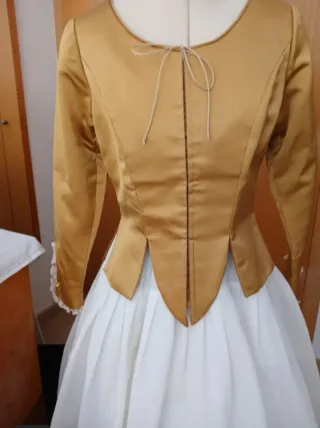 Adolescente o adulta que use talla xs-s. La falda mide 95cm De axila a fin corpiño 25cm Cintura unos 35cm pero puede hacerse más grande tiene tela. Se vende sin manteletas tal cual las fotos. Se vende por qué no me viene y lo tengo en el armario sin usar. Valenciana, fallera.
